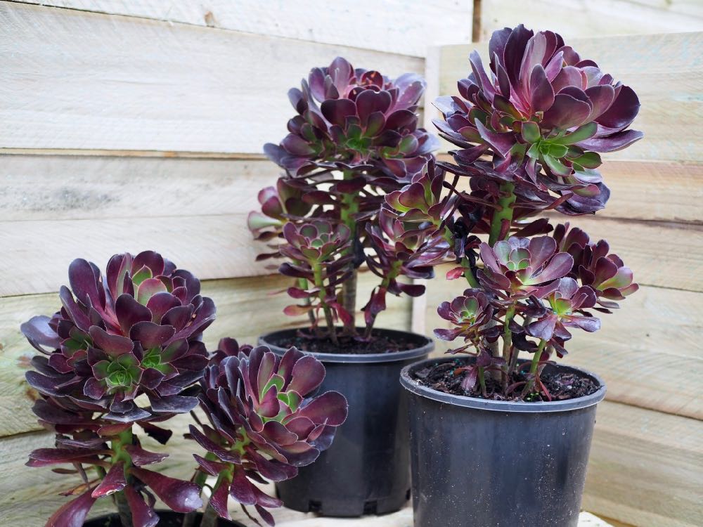 If you?re looking for a succulent that?s sure to turn heads, look no further than Aeonium Schwarzkopf. This gorgeous plant is characterized by its rich, dark chocolate and plum-colored foliage. Small, bright yellow flowers appear in late winter, adding an extra touch of beauty to this already stunning plant. This plant prefers a sunny, open position in well-drained soil. It?s also drought tolerant, making it ideal for hot, dry conditions. Whether you?re looking to add some color to your garden beds or border, or you?re searching for the perfect container plant, Aeonium Schwarzkopf is a great option.
