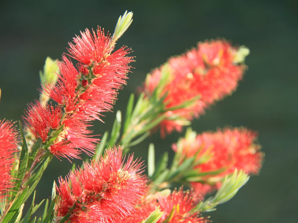 This tall, spreading shrub features attractive weeping branches and showy red bottlebrush-shaped blooms with yellow anther tips. And the best part? The flowers continue to bloom throughout the year, with prolific flushes in spring and autumn.