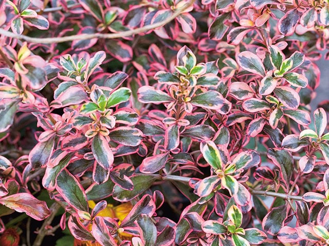 In the summer, the foliage is a pale cream color. As the temperature starts to cool in autumn, the leaves transform into a shade of pink. This vibrant display continues throughout the winter months, giving your garden a much-needed splash of color.