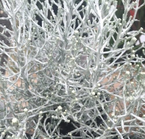 Leucophyta brownii, commonly known as Cushion Bush, is a remarkable shrub revered for its unique appearance and hardiness. Originating from Australia, this evergreen perennial boasts densely packed, silvery-grey, needle-like foliage, resembling a cushion or a small mound. Its compact, rounded form and distinctive coloration make it an eye-catching addition to rock gardens, coastal landscapes, or container arrangements. Thriving in dry, coastal conditions, Cushion Bush exhibits remarkable drought tolerance and is resistant to salt spray, making it an ideal choice for gardens in harsh coastal environments. This resilient plant requires minimal maintenance, preferring well-drained soils and full sunlight. Its striking texture and ability to withstand challenging conditions contribute to its popularity among gardeners seeking a resilient and visually appealing addition to their outdoor spaces.