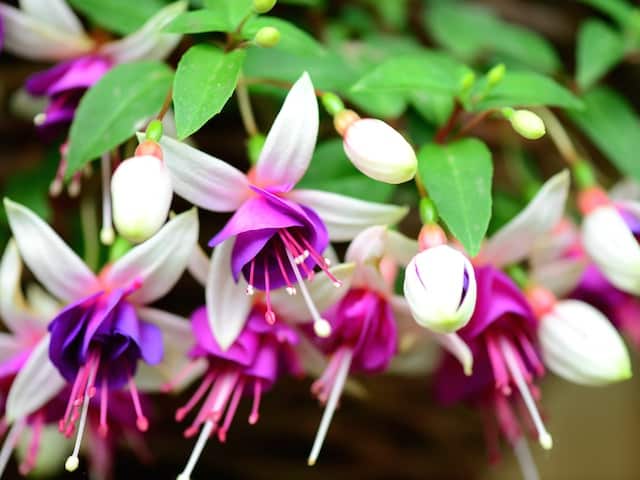 Fuchsia is a semi-deciduous, green leaf shrub with multi-coloured flowers. Flowers flower for a long time from late Spring through to Autumn.