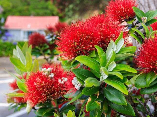 Metrosideros Tahiti is a neat, compact, hardy plant with grey new foliage that turns to green when mature. Brilliant red-orange flowers are borne in late winter and spring. This plant is great in coastal areas.