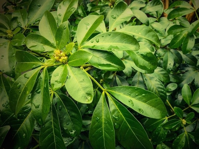 Mexican Orange Blossom is a versatile evergreen shrub beloved for its aromatic fragrance and ornamental beauty. This resilient plant boasts glossy, dark green foliage composed of three leaflets, emitting a delightful citrus scent when crushed or brushed against.