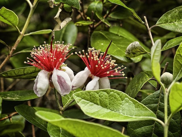 Pineapple Guava is a flavor explosion like no other! This incredible shrub provides an evergreen treat for the taste buds with its unique strawberry-pineapple hybrid flavor. Not only does it deliver a unique fruit that?s sure to tantalize your taste buds, but its flowers are also a sight to behold. Feijoa Sellowiana?s blooms have extraordinarily large stamens that burst forth in beautiful color. It really is a feast for all your senses!