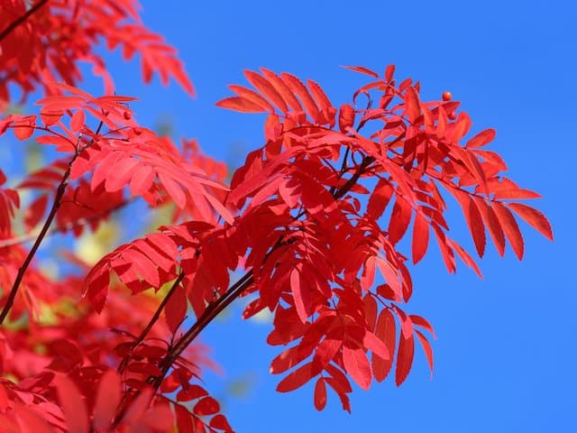 The narrow pinnate leaves of Raywood Ash are deep green and turn a beautiful mix of colours in Autumn, including yellow-green, deep claret colours, Reds, oranges and yellow. The incredible mix of colours is very eye catching.